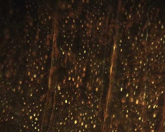 relatively large, while the latewood pores are much smaller