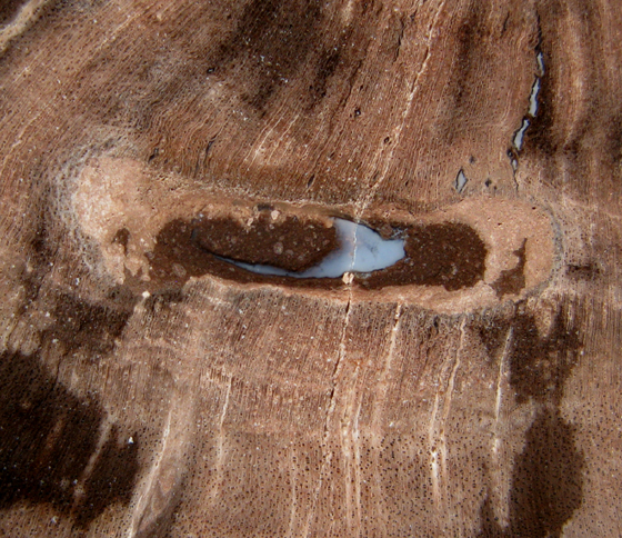 wood and bark tissues. An insect gallery can be seen in the