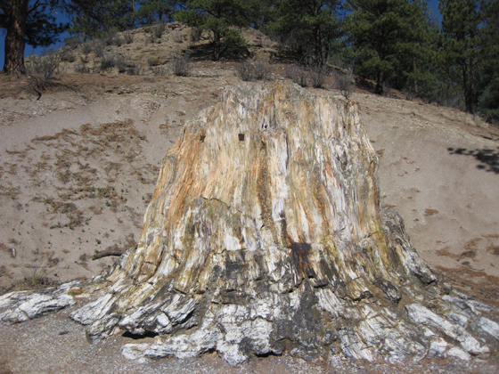 forest. The lower mudstone unit is exposed behind the Big Stump