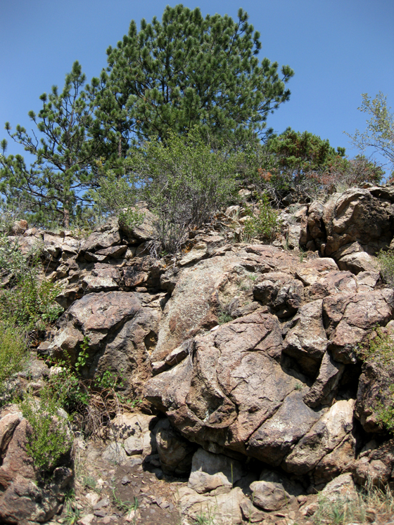 Pikes Peak Granite, Wall Mountain Tuff, and fragments of