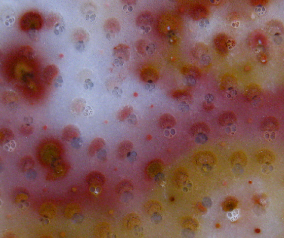 and color observed at only magnified levels. The first three images were taken with a Canon