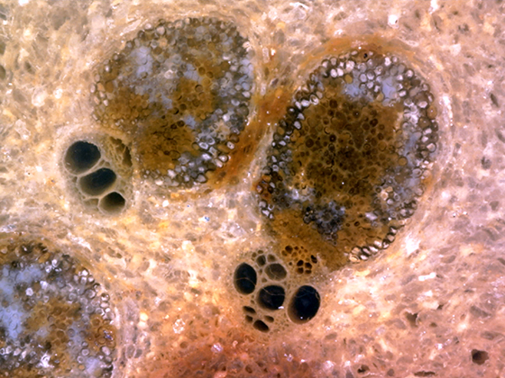 The next three images were taken at 150x with a Dino-Lite AD7013 MT 5.0 MP. Images were resized in Adobe Photoshop CS6. |