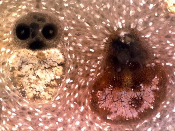 The next four images were taken with a Dino-Lite AD7013 MT 5.0 MP. Images were resized in Adobe Photoshop CS6. The red vascular bundle has a