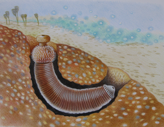 of the proboscis was equipped with sharp teeth. Ottoia burrowed,