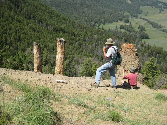 Jim and Mike taking photos of the "twin trees". The trail to get down to this spot is extremely steep!