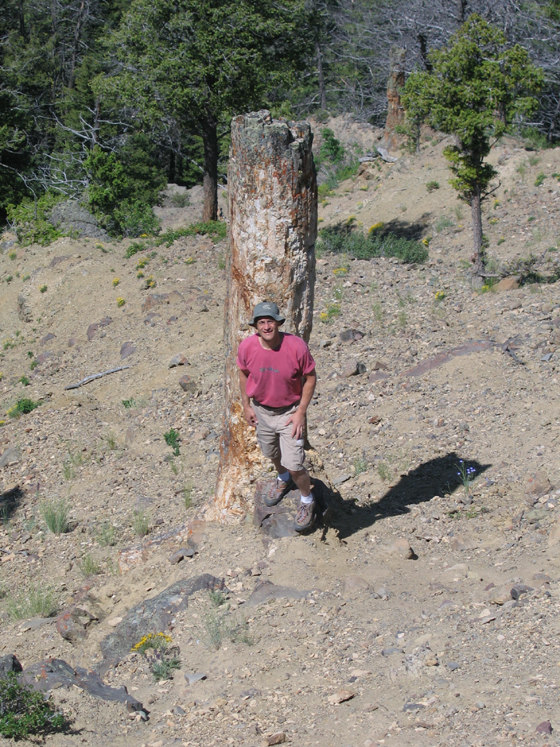Jim takes a photograph of Mike Viney standing next to one of the twin trees. This area is very steep and difficult to negotiate.