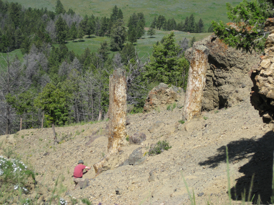 Mike takes a photo of the a root on one of the twin trees. Mary Klass captures the moment.