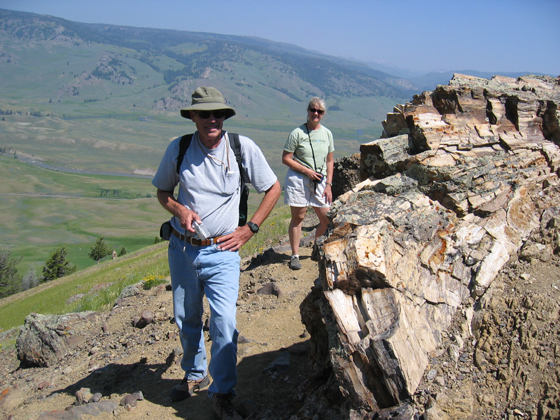 Jim Mills and Mary Klass stand by a large fossil
